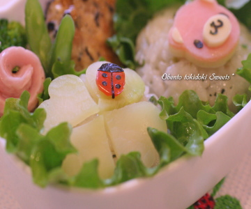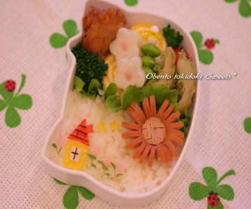 春うらら 口内炎に苦しんでます 舌先に2つ、舌の付け根に1つ 合計3つも出来ちゃって 舌の置き場がありませんッ(痛 今年度のオベントウ作りは明日で最後になってしまいました 4月から続けてきた1年間のオベントウの記録の中には 恥ずかしくなる様な出来栄えのオベントウも沢山・・・^^; でも この1年で6cmも背が高くなったモモのカラダを作ったものが あの日のオベントウの卵焼きだったり ミニトマトやブロッコリーだったりするのかもしれないと思うと 不恰好でもワタシにとっては1つ1つが愛しいオベントウたち! 記録に残して良かったです^^ そして多分、、、 来年度もオベントウの記録は続けて行くんじゃないかと思います・・・ @がんばれ自分、、、 っと、その前に明日もオベントウ作りがあるんですけどね・・・^^; ポカポカ小春日和の今日は幼稚園の小遠足 オカズは控えめ、主食は手で持って食べられるもの限定で~す ★鮭わかめオニギリ ☆ユデタマゴ ☆ミートボール ☆枝豆スティック ☆ウィンナー ☆ミニトマト ☆ブロッコリー ☆キャンディチーズ